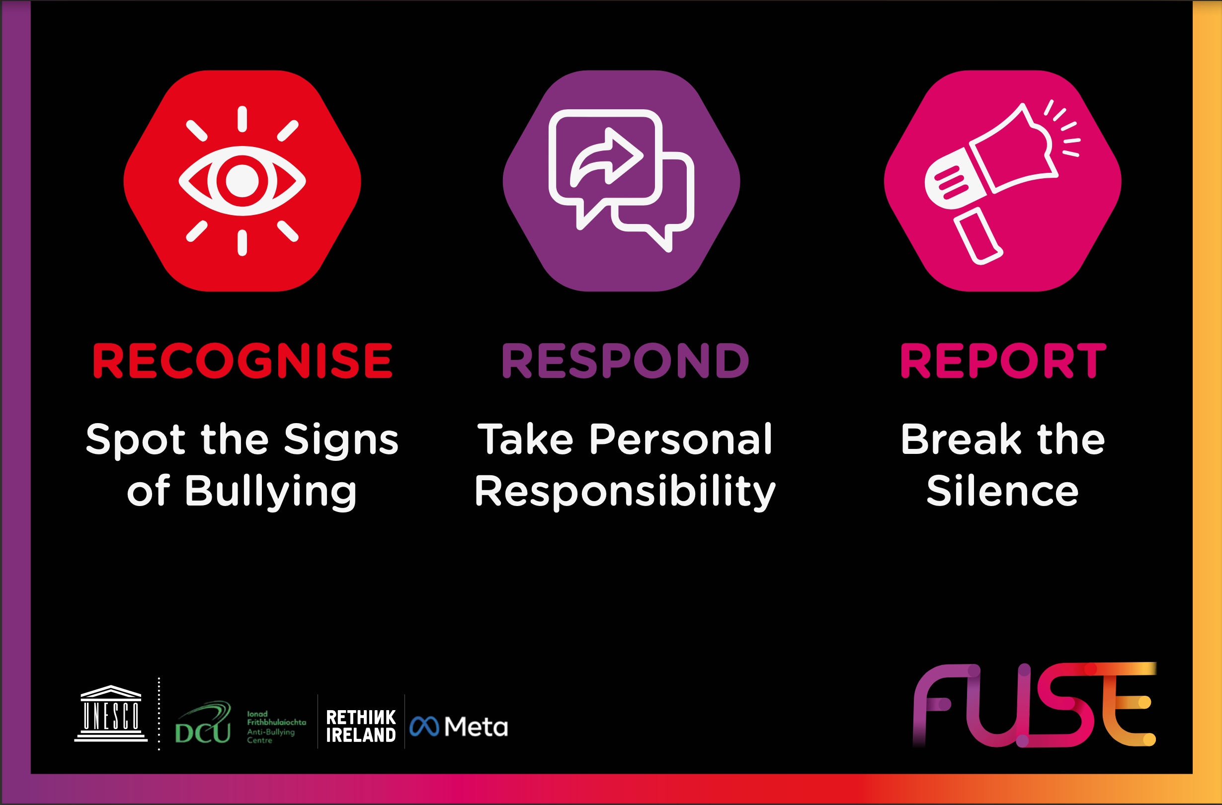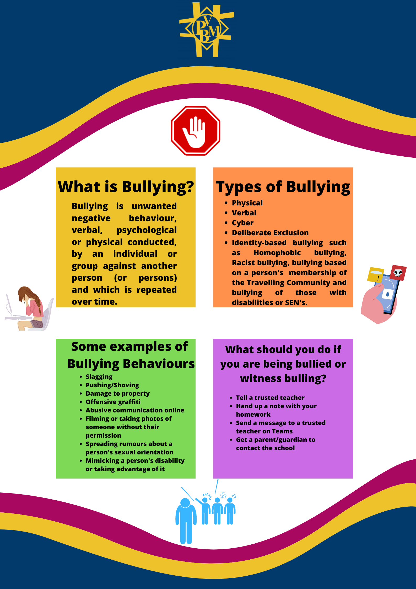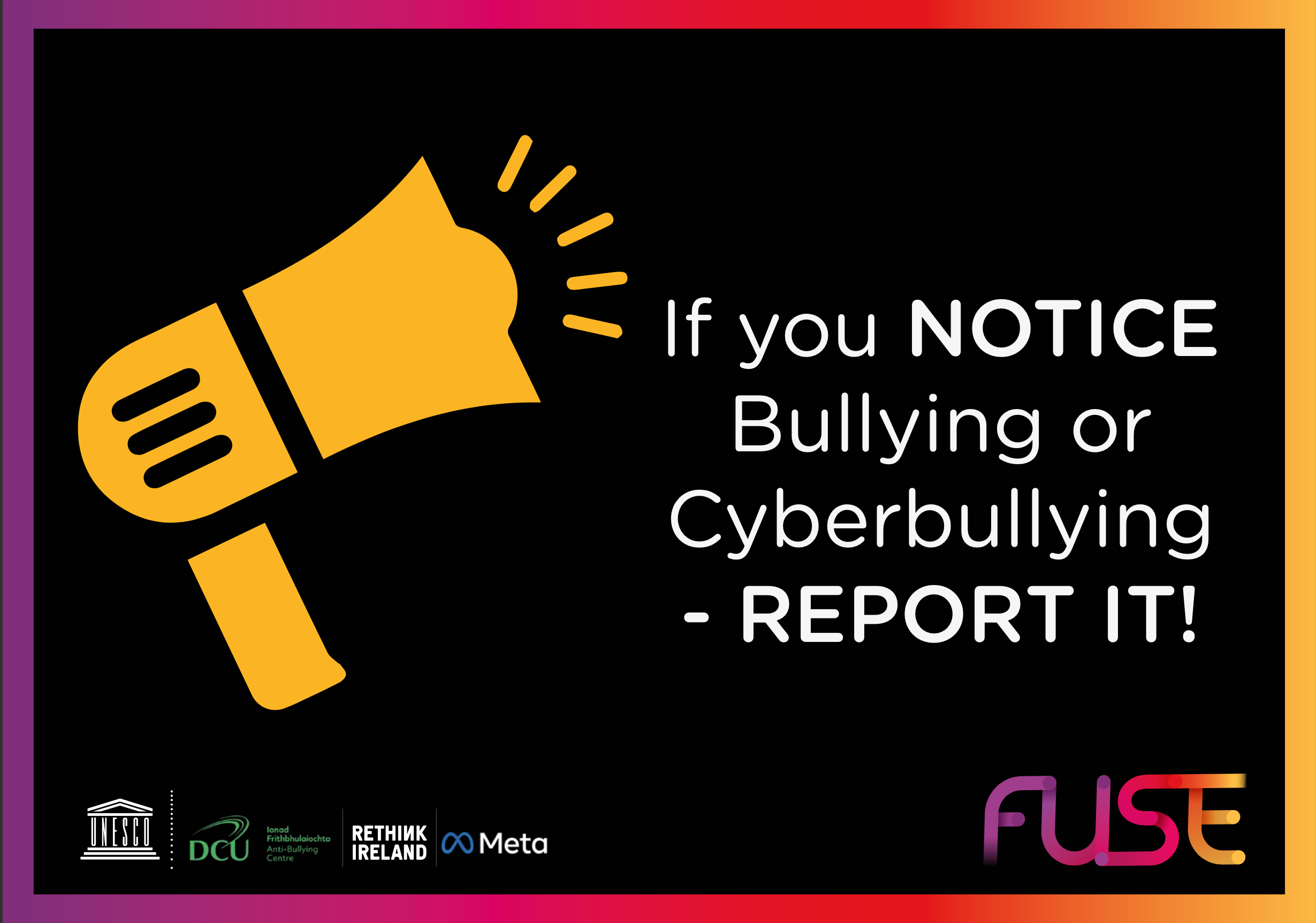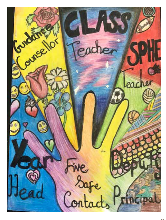 This poster was designed by a student of Coláiste Nano Nagle, as part of our first Amber Flag initiative. It shows Five Contacts that students can go to if they want to talk to someone about anything, including bullying.
